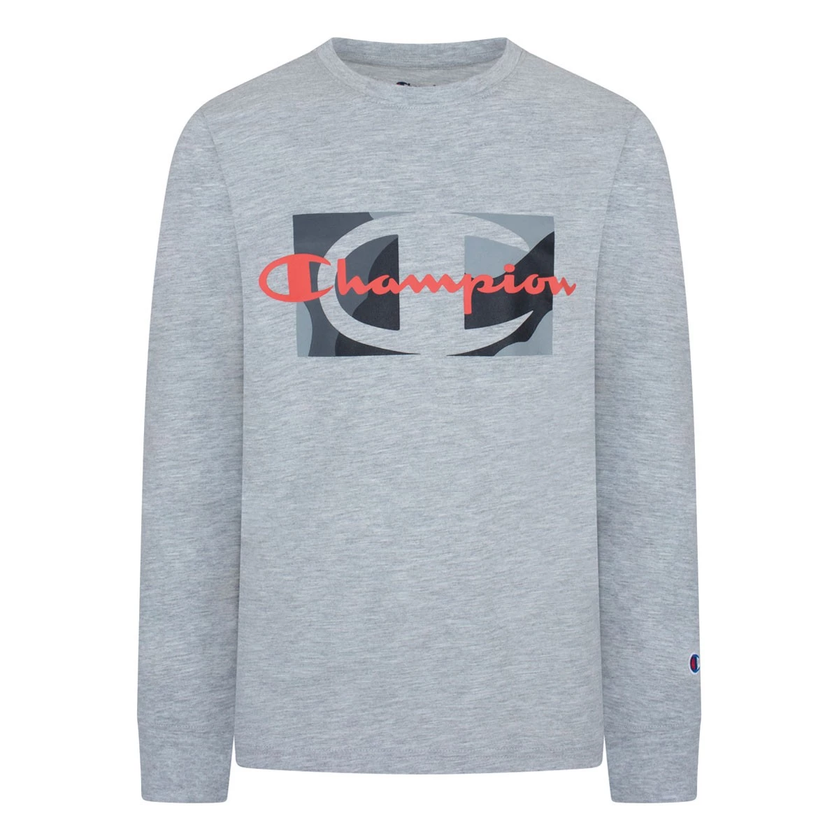 Boys’ Champion Long Sleeve Script Over Camo T-Shirt Oxford Heather