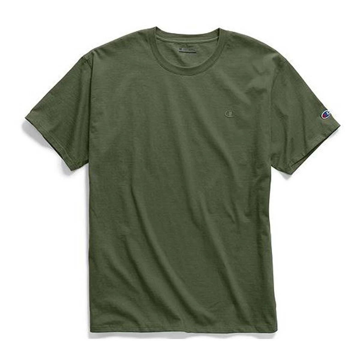 The Men’s Champion Classic Jersey T-Shirt is well-made and comfortably priced. This jersey cotton t-shirt is ringspun with a higher stitch density for durability and softness. With a narrower ribbed collar for a streamlined look and clean-finish single needle stitching, you can trust this Champion T-Shirt to stand up to daily wear and tear. Complete with an athletic fit through the shoulders and body with a narrower bottom hem, you’ll enjoy the modern fit that flatters your figure. Shop the Men’s Champion Classic Jersey T-Shirt at SCHEELS today!