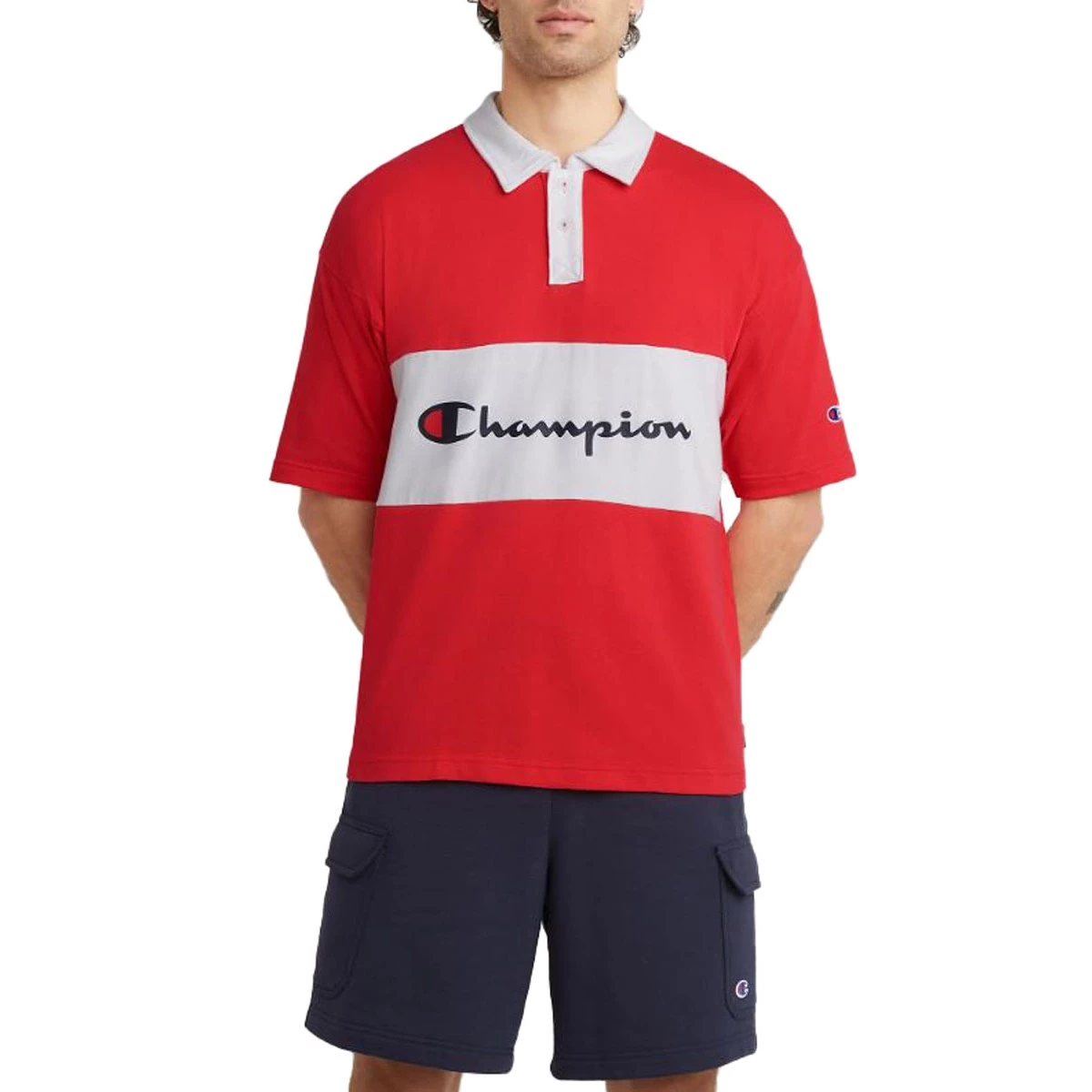It’s the iconic rugby shirt paired with classic Champion details for next-level sport style. Polo features a loose fit for a roomy feel, for the ultimate in comfort in the stands or on the street. Ideal for any season, it’s made from thick, durable cotton, with contrast fold over collar and button placket for an on-trend color block effect. Finished with Champion script logo, C patch logo on left sleeve and branded woven taglet at left hem for leveled up sport style.