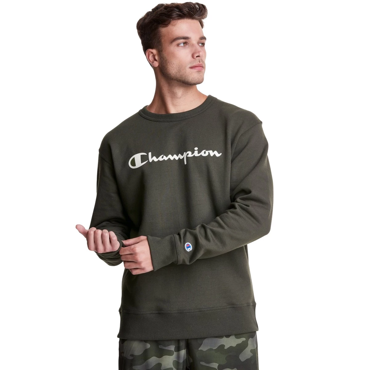 - Screenprint Champion logo center chest. C patch logo at cuff.