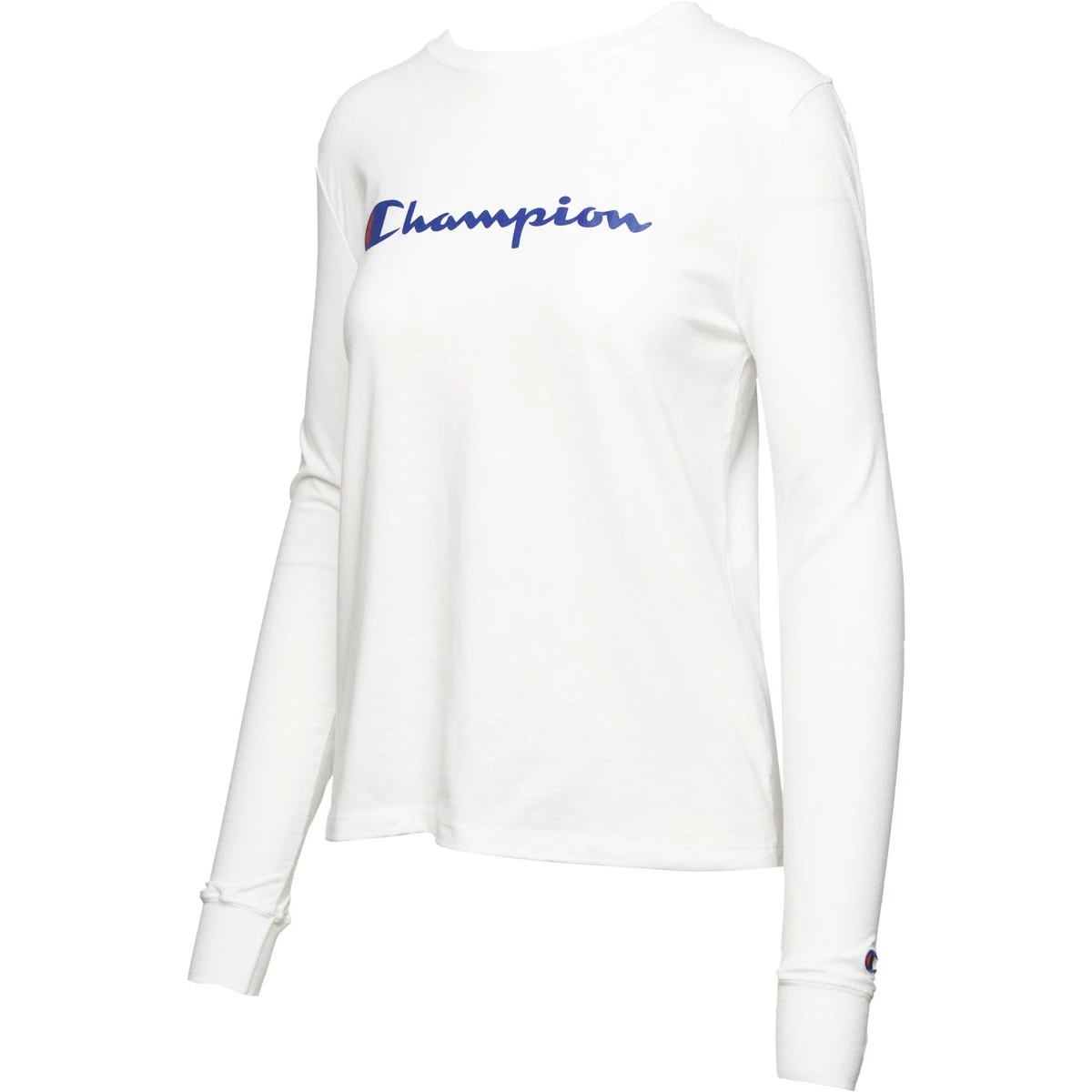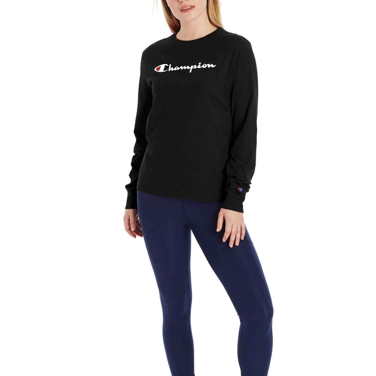 The Women’s Champion Classic Long Sleeve Graphic T-Shirt is a great casual layer for warmth and comfort of a chilly day. Made from durable and soft material, the Champion long sleeve shirt is incredibly comfortable, while the ribbed cuffs and crew neckline offers a better fit. With the screenprint graphic, you’ll enjoy a more athletic style. From running errands to comfy days on the couch, wear the Women’s Champion Classic Long Sleeve Graphic T-Shirt.
