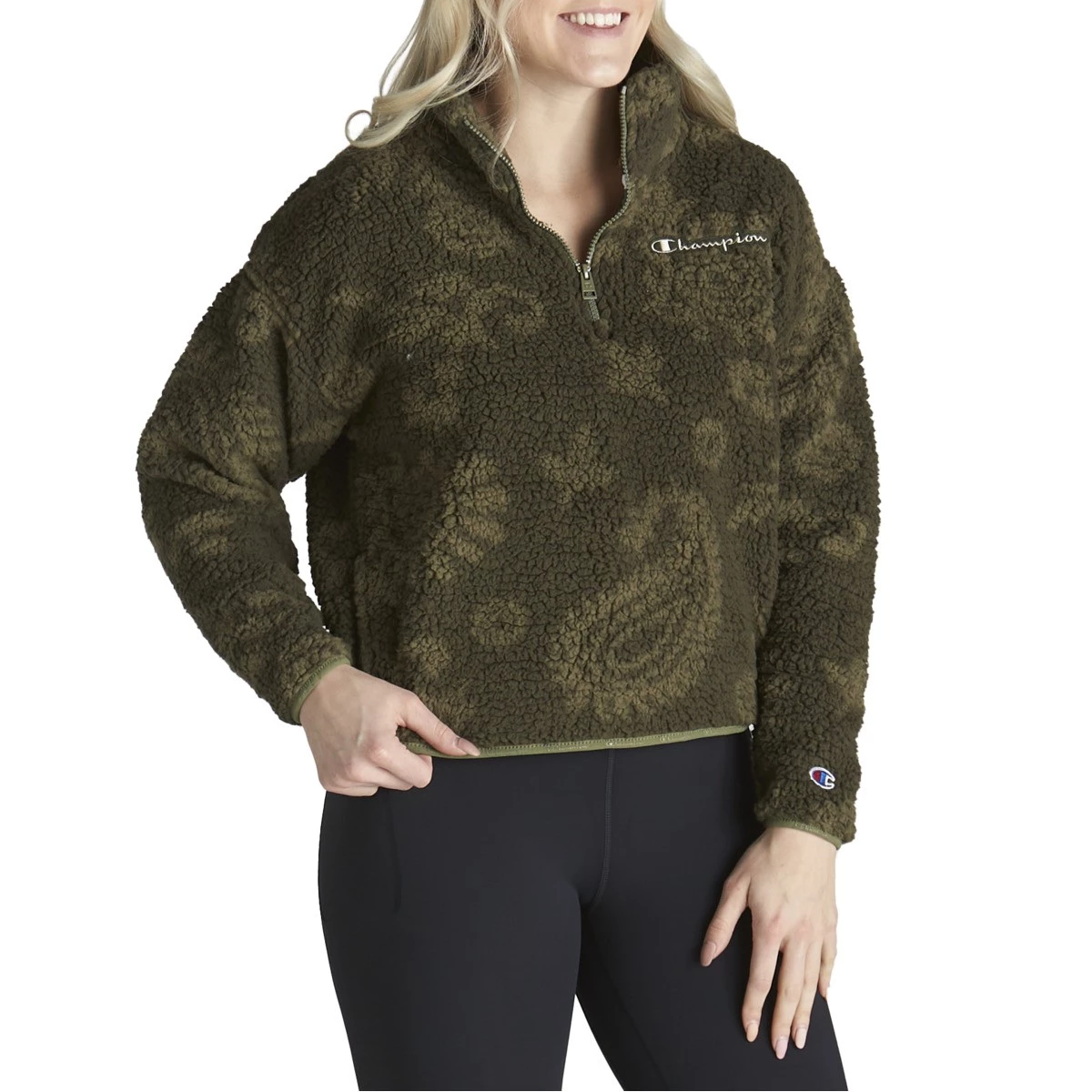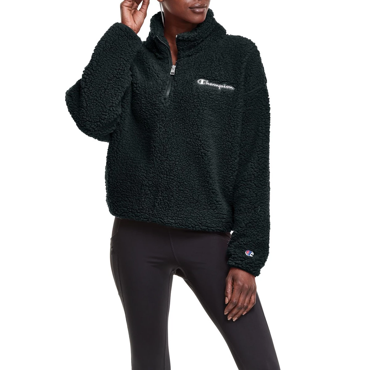 The Women’s Champion Cozy High Pile Sherpa 1/4 Zip is the coziest way to stay warm this winter. The Champion Cozy High Pile Sherpa 1/4 Zip wraps you in warmth while keeping you looking your best in a luxurious Sherpa fleece. Just pull this top over your head and zip it to your preferred coverage. Add the Women’s Champion Cozy High Pile Sherpa 1/4 Zip to your wardrobe this season.