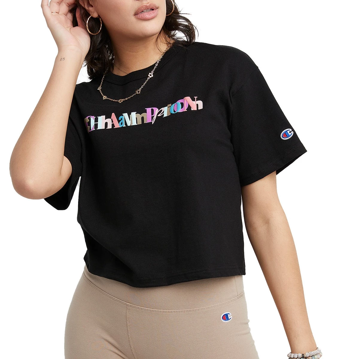 Women’s Champion Heritage Overlap Ink Graphic Cropped T-Shirt Vintage Mauve