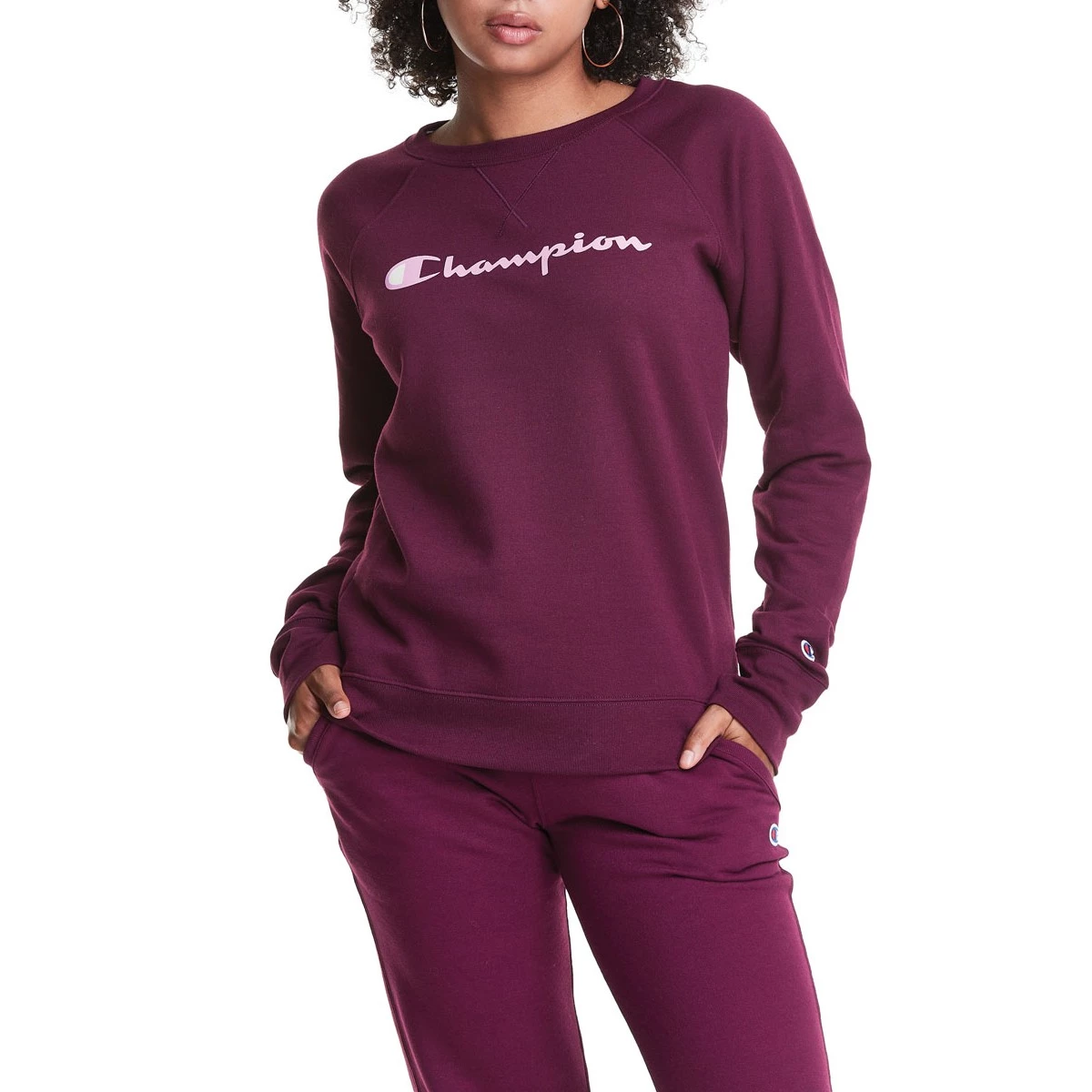 The Women’s Champion Powerblend Boyfriend Script Logo Graphic Crew gives you that “stolen from the guys” look and feel. This Champion crewneck sweatshirt for women offers a modern, boxy fit that keeps you comfortable all day. Plus, the Champion logo and C patch give this women’s crewneck a sporty look that never goes out of style. Cozy up in the Women’s Champion Powerblend Boyfriend Script Logo Graphic Crew.
