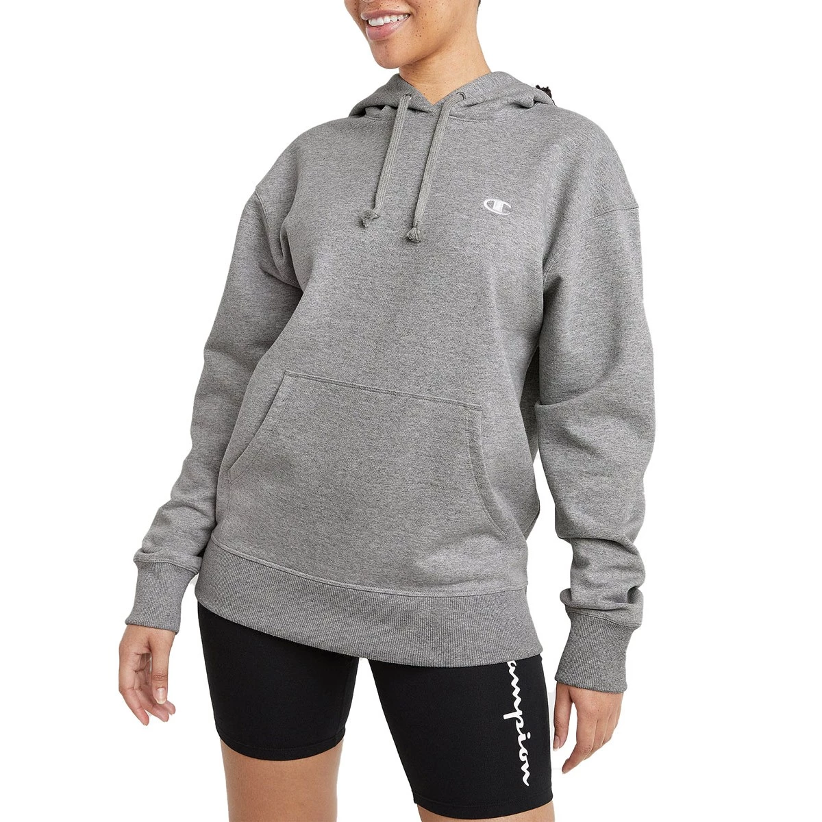 The Women’s Champion Powerblend Oversized Hoodie offers a relaxed and roomy fit for the ultimate comfort sweatshirt. Made from a blend of polyester and cotton, the Champion Powerblend Oversized Hoodie is super soft, cozy, and comfortable. The ribbed wrist cuffs and waistband provides additional comfort, while the hood with a drawstring closure provides added coverage when needed. You’ll love the comfort of the Women’s Champion Powerblend Oversized Hoodie to wear after a workout or on the weekends.