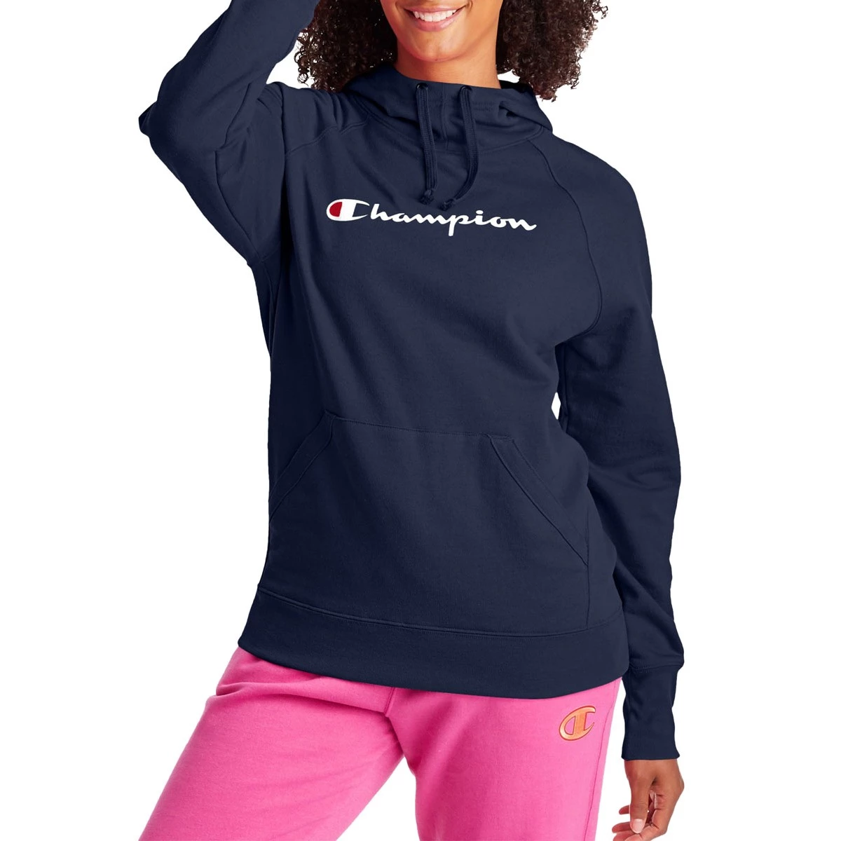 The Women’s Champion Powerblend Script Graphic Hoodie is a comfortable layer for running errands or lounging around the house. Made with soft, durable material, this Champion women’s hoodie will feel soft next to your skin, while the ribbed wrist cuffs and hem offer a better overall fit. The hood features adjustable drawcord closures for a secure fit, while the kangaroo pocket provides plenty of storage space. Stay comfortable in the Women’s Champion Powerblend Script Graphic Hoodie.