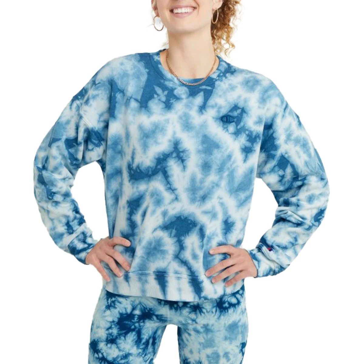 Women’s Champion Relaxed Fleece Dye Crew Crush Dye Fresh Teal