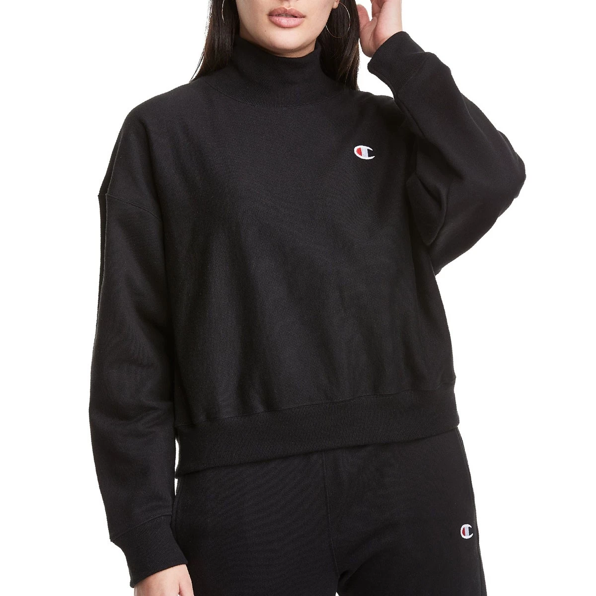 Women’s Champion Reverse Weave Mock Neck Cropped Sweatshirt Black